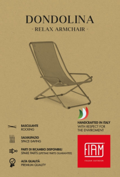 Der FIAM® Liegestuhl Dondolina lässt sich schnell und einfach zusammenklappen und die verstellbare Rückenlehne bietet Ihnen individuellen Liegekomfort. Die schwingvolle Aufhängung der unempfindlichen und UV-beständigen Liegefläche ermöglicht entspannte Stunden in der Sonne. Holen Sie sich den trendig, bunten Schwingsessel in Ihren Garten.