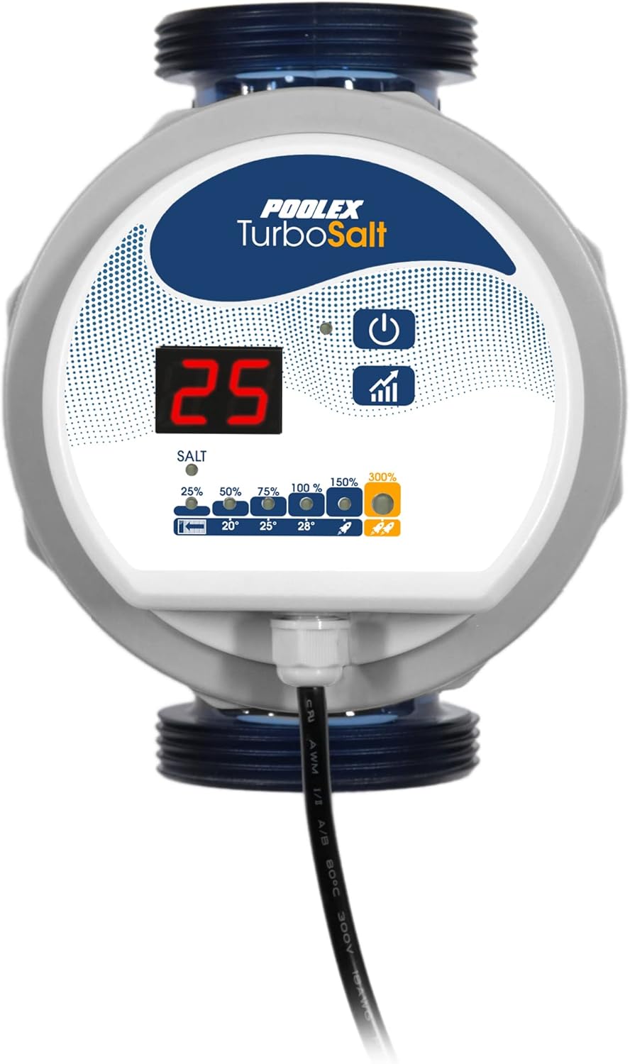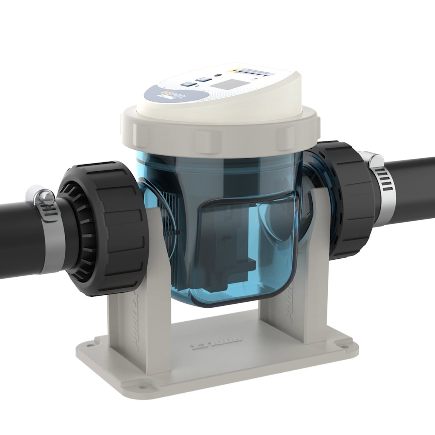Für Schwimmbecken bis 20m³, wird der Turbo Salt CL-TS200 mit 50mm sowie 32/38mm Anschlüssen geliefert. Dank seiner Wand- oder Bodenhalterung kann dieses Salzelektrolysegerät an alle Filtertypen angepasst werden, und dank seiner ultrakompakten Grösse passt es auch in die kleinsten Maschinenräume.