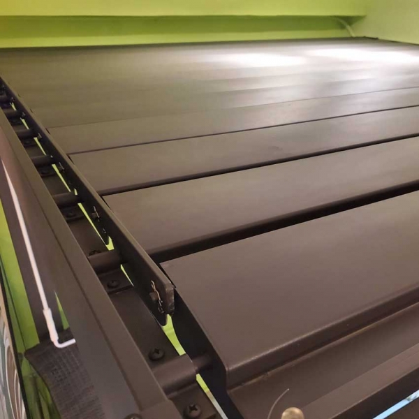Wenn die Lamellen geschlossen sind, ist das Dach vollständig wasserabweisend. Das Wasser wird durch das innovative integrierte Wasserabführsystem direkt kontrolliert abgeführt.